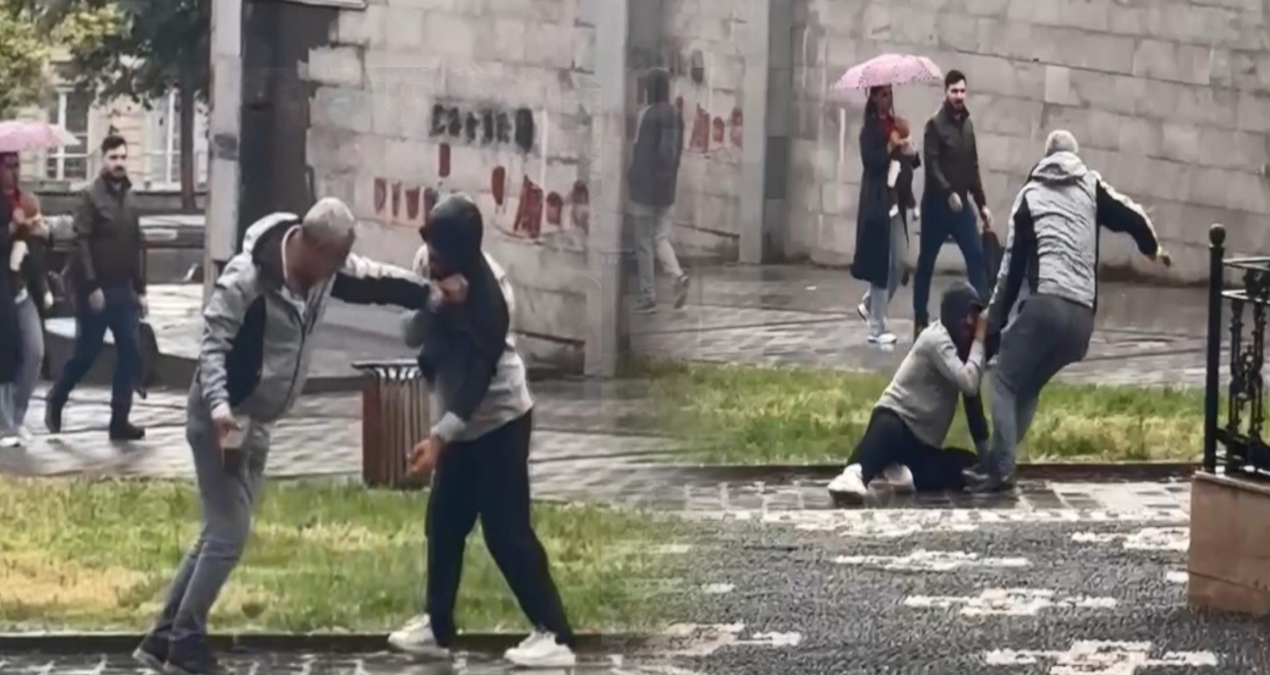 Kısa sürede büyüyen tartışma kavgaya dönüştü. Kavga sırasında taraflardan biri tartıştığı kişiyi dakikalarca yerde sürükledi. Ardından da elindeki kaldırım taşıyla yerdeki kişinin bacaklarına vurmaya başladı.Bu sırada kavgayı gören çevredeki vatandaşlar araya girerek tarafları ayırmaya çalıştı. Kavga anları ve taralardan birinin yerde sürüklenerek, kaldırım taşıyla darbedildiği anlar cep telefonu kamerasına yansıdı.(