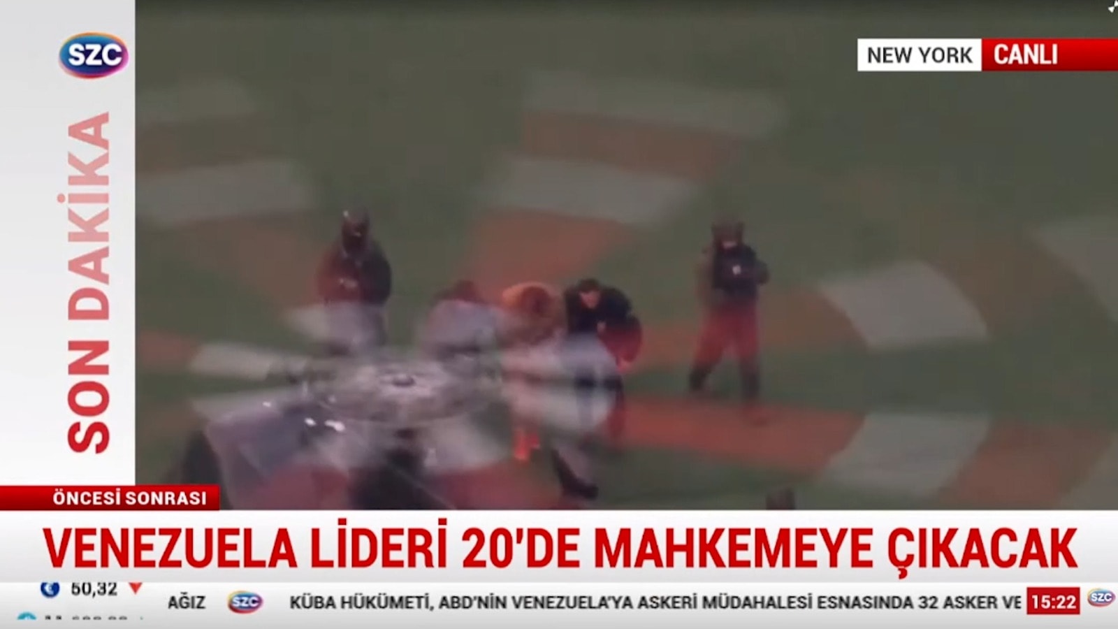 Maduro, ceza evinden alınarak konvoyla mahkemeye çıkartılacak. 5 araçlık konvoy, Maduro’yu helikoptere götürmek için kısa bir tur attı. Maduro, Türkiye saatiyle 20:00’da yargılanacak.